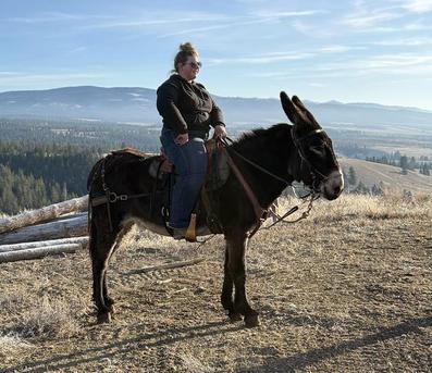 Kit is the type that once she gets to know you, she is by your side ready to go for the next adventure. She is a straight and well put together as far as mind and conformation go. Loads right in the trailer and is happy to go. Logs are no problem for this girl either, if she can step on over she will or if it is a big log blocking the way jumping up and over is not a problem! She is a very forward mover and is a smooth ride.
